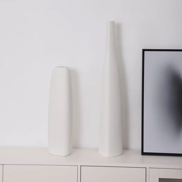 A sleek, sculptural piece designed to elevate any room. The Tall Ceramic Vase stands at 77 cm, making it the perfect statement décor for empty corners, entryways, living room setups, or beside low furniture. Its elongated shape and fine vertical texture give it a stylish, contemporary look that feels both minimal and bold.